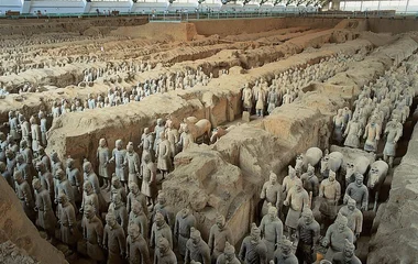 Это комплекс из 8 000 терракотовых статуй, которые изображают солдат и лошадей из войск первого императора Китая. Они были захоронены в гробнице мавзолея императора Цинь Шихуанди в 210 г. до н. э., а обнаружены лишь в 1974 г. крестьянином, который копал колодец. Следуя маршрутом «Китай Голубой реки», воспользуйтесь шансом полюбоваться удивительными статуями, сохранившимися до наших дней.